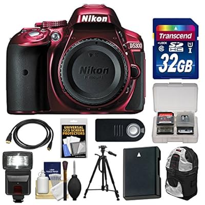 You're looking for Nikon D5300 Digital SLR Camera Body (Red) with 32GB Card Backpack Flash Battery Tripod HDMI Cable Remote This is a quality product We recommend.
