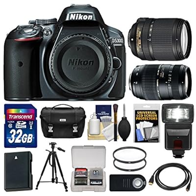 You're looking for Nikon D5300 Digital SLR Camera Body (Grey) with 18140mm VR 70300mm Zoom Lens 32GB Card Case Flash Battery Kit This is a quality product We recommend.